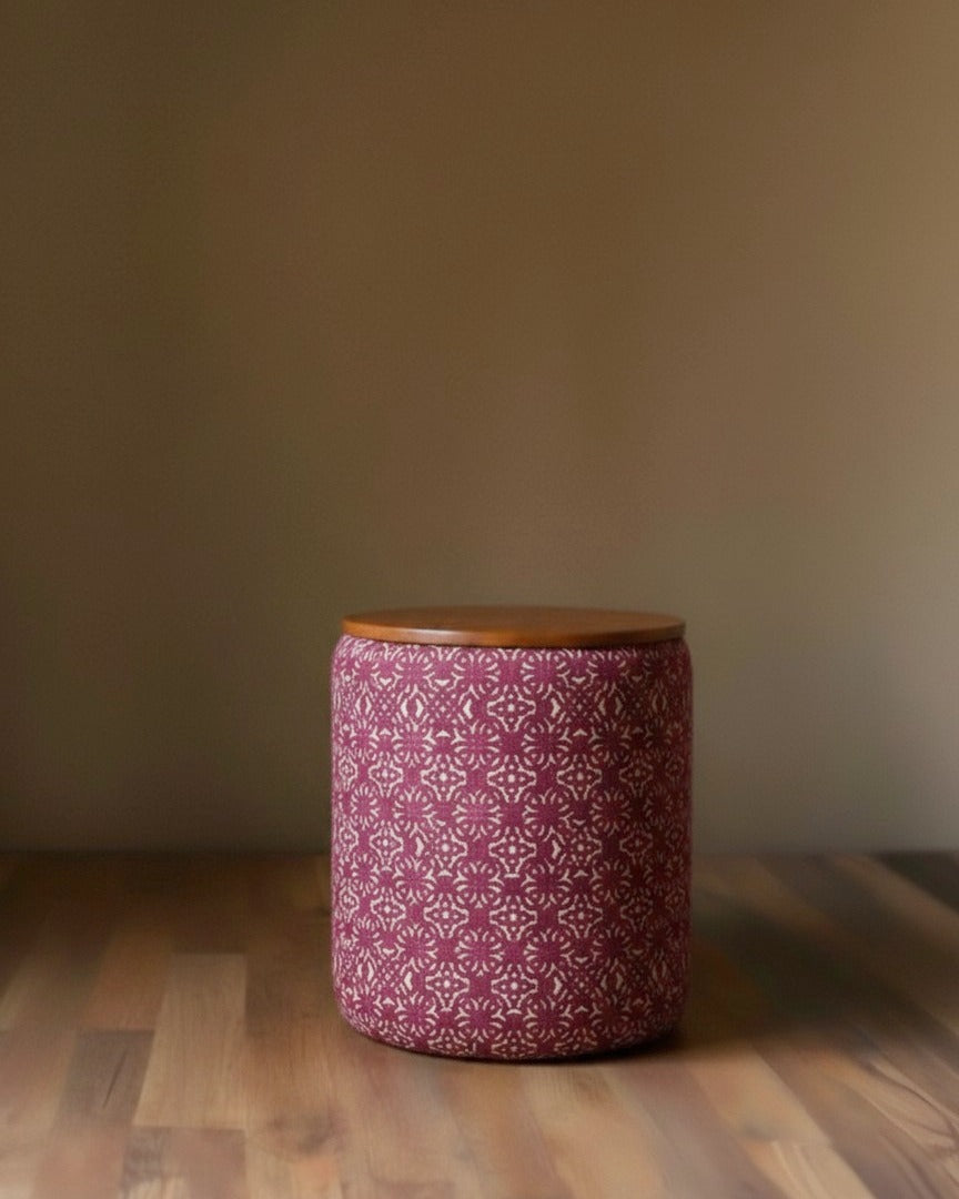 The Bennett Storage Ottoman seamlessly blends refined aesthetics with practical storage. Wrapped in sumptuous velvet with striking geometric detailing inspired by Moroccan design, this drum-shaped piece adds understated elegance to any room. The sturdy wood top functions as a convenient side table for beverages, books, or décor, while the spacious lined interior conceals blankets, toys, and household essentials. Whether anchoring a living room, nursery, or reading corner, the Laurent delivers both visual sophistication and everyday functionality—a thoughtfully designed piece that earns its place in a well-appointed home.