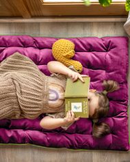Surround your child with their favorite pile-up pillows to build a soft sanctuary of rest and relaxation. Inspire your child to dream up new, imaginative worlds while creating a comfy spot to let their minds wander. Add a blanket or our tent overtop your triangle and watch them snuggle in.