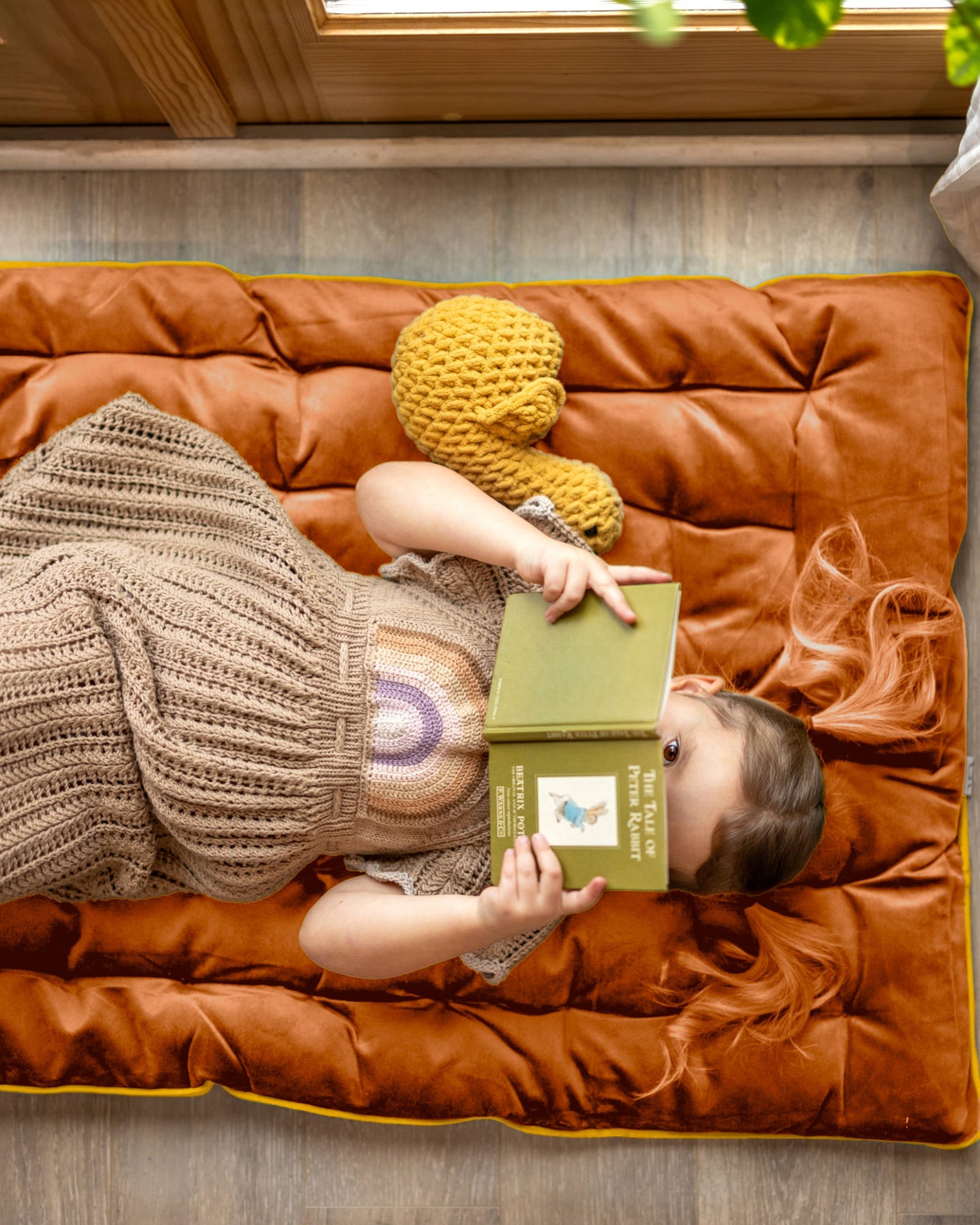 Surround your child with their favorite pile-up pillows to build a soft sanctuary of rest and relaxation. Inspire your child to dream up new, imaginative worlds while creating a comfy spot to let their minds wander. Add a blanket or our tent overtop your triangle and watch them snuggle in.