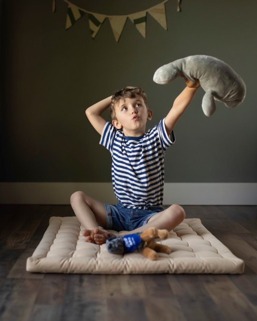 Whether it’s for a deep-dive into a favorite book, a comfortable spot for building blocks, or simply lounging on a lazy afternoon, this cushion is the ultimate foundation for quiet moments. Its sophisticated color palette ensures it looks just as beautiful in a living room as it does in a playroom. Create the reading nook of their dreams—right on the floor.