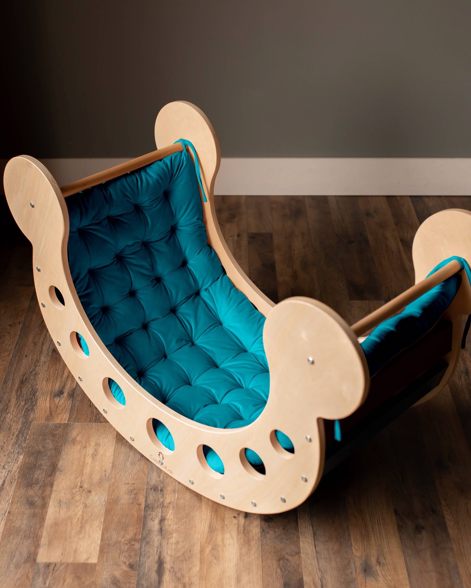 Provide your children with added comfort using the Jumbo Rocker Pillow, designed specifically for our jumbo rockers with rods. This cushion creates a cozy spot for kids to unwind and enjoy quiet moments after playtime. It encourages young imaginations to explore distant worlds while remaining comfortably at home. Nestle them among beloved stuffed animals to create a gentle haven for rest and relaxation. This mat is tailored to fit both our Arches and Jumbo Rockers. For those with the Large Rocker, matching Large Pillows are also available.