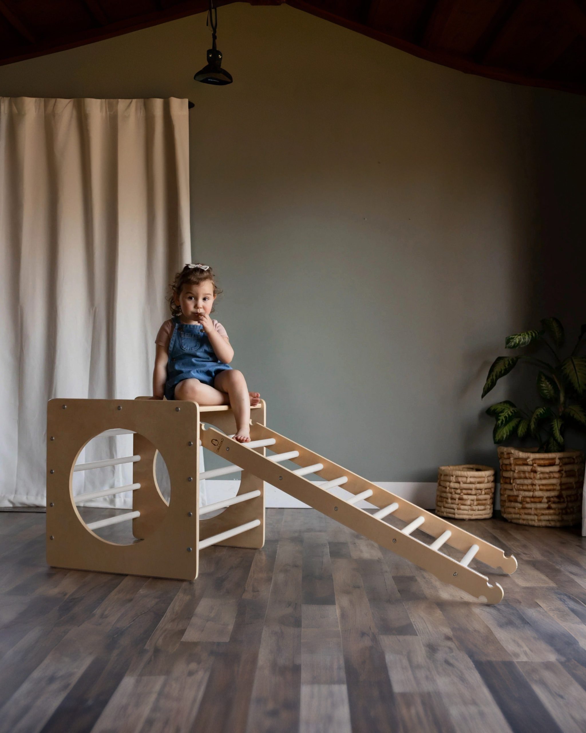 Add hours of play to your child’s day without adding a pile of clutter! The compact but sturdy Play Cube was designed with your little learner in mind. It’s the best way to help them develop their gross motor skills while encouraging their imagination. Infants can practice pulling up and cruising, becoming familiar with balance and speed. Your toddler can travel through the tunnel or scale to the top, surveying the vast land below. And your preschooler can carefully climb each ladder rung as their skills grow. Enjoy a better playtime with this essential set.