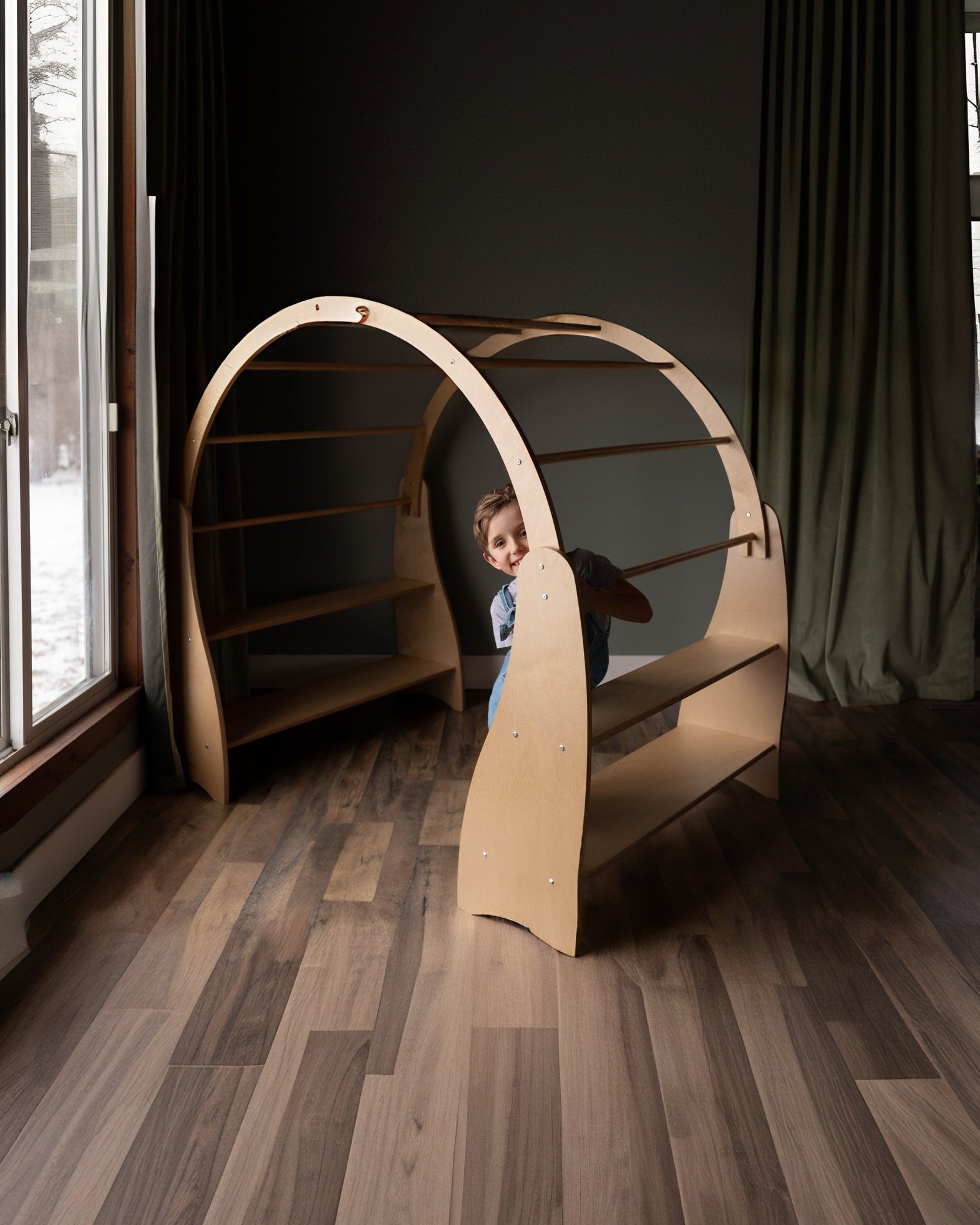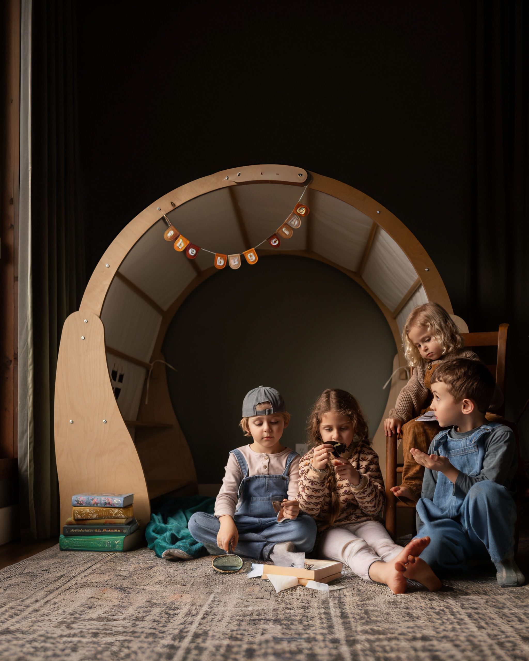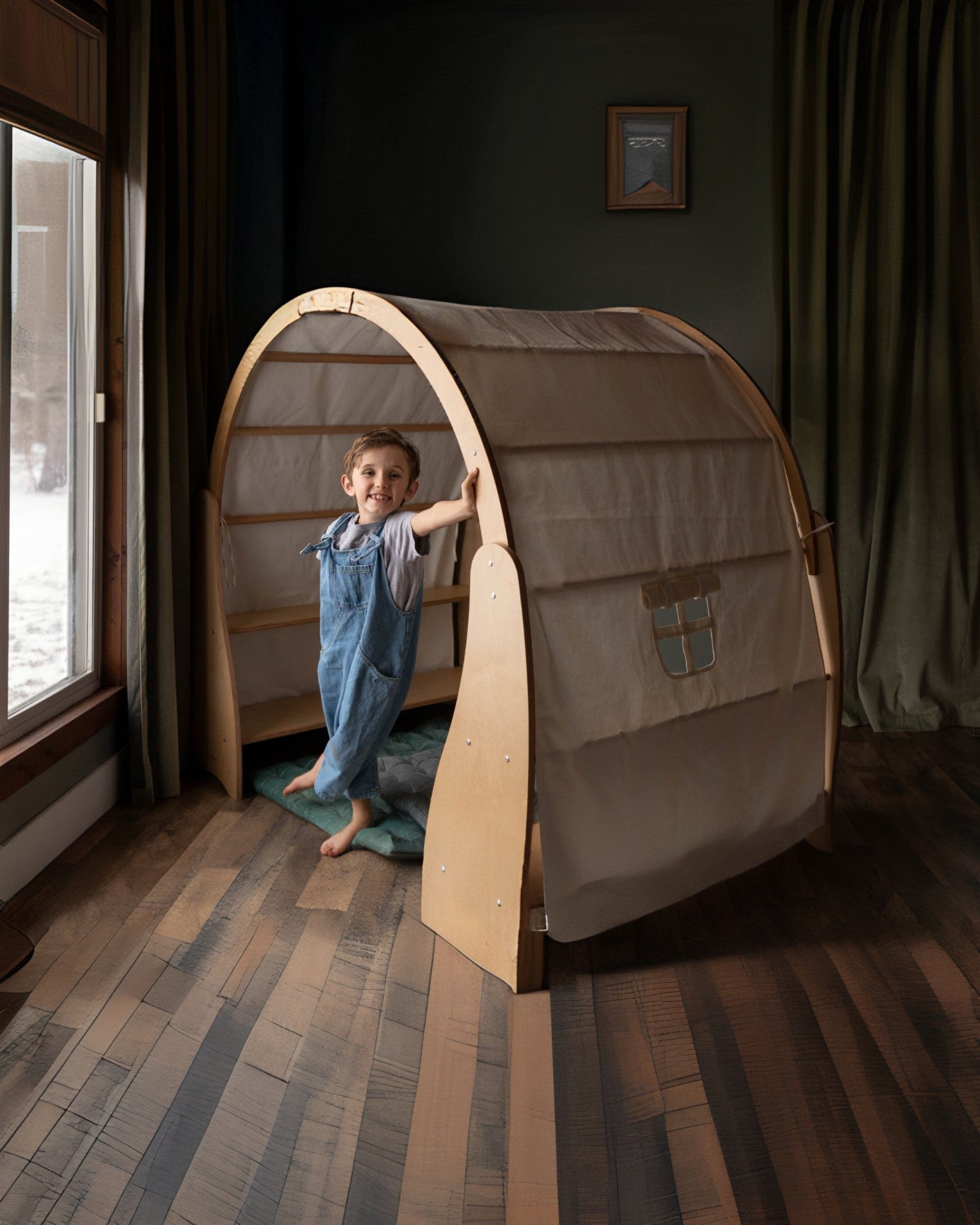 Create a cozy world of play with this solid wood Waldorf Playstand! Your child can have their very own play area, create their perfect reading nook or an imaginative play house. The Wooden Playstand will give your toddlers and preschoolers years of exploration and fun. Set up book store, library, plant shop or a cushy stuffie space for rest and relaxation. There’s plenty of room for everyone. This playstand makes a beautiful centerpiece for your child’s playroom. Give your child a world of cozy adventures. Bring extra fun and comfort to their playtime with the playstand cover. (Playstand cover is sold separately)