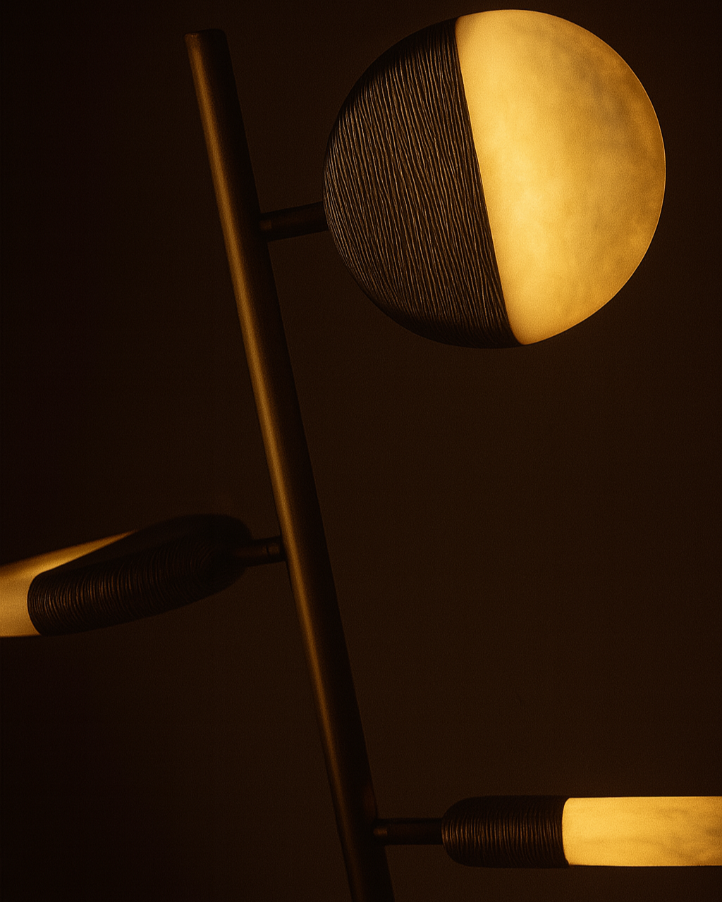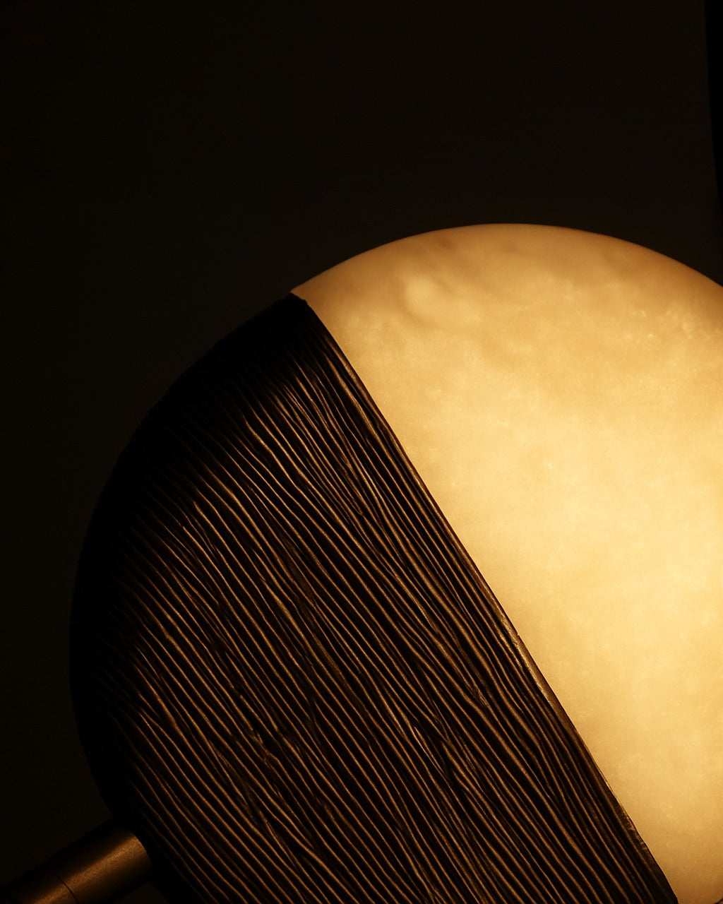 Cassiopeia floor lamps are handcrafted from sleek steel and luminous alabaster stone, its elegant torchiere silhouette casts a warm, inviting glow. Each lamp is a unique work of art, showcasing the intricate swirls and veining patterns inherent in natural alabaster, adding a touch of refined luxury to any space.
