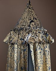 Elevate your living space with this exquisite velvet canopy, a masterpiece inspired by the opulent grandeur of Fabergé egg designs. Adorned with a lustrous golden print against a rich, deep velvet, this canopy exudes regal elegance & sophisticated charm. The intricate patterns, reminiscent of historical artistry, promise to transform any room into a sanctuary of luxury. Perfect for creating a dramatic focal point, a cozy reading nook, or adding a touch of imperial splendor to a bedroom. This canopy is more than just decor; it’s an heirloom in the making, inviting a sense of timeless beauty and grandeur into your home.