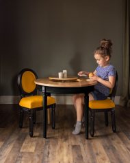 The Genevieve play table with storage is a versatile & functional addition to any playtime setup, providing both entertainment and organization. Crafted from durable solid oak, this charming table offers a safe and sturdy option for play. Choose from a range of elegant colors such as marigold, forest green, purple, black, and natural tones, to create a serene and personalized space for your child to relax and play in.