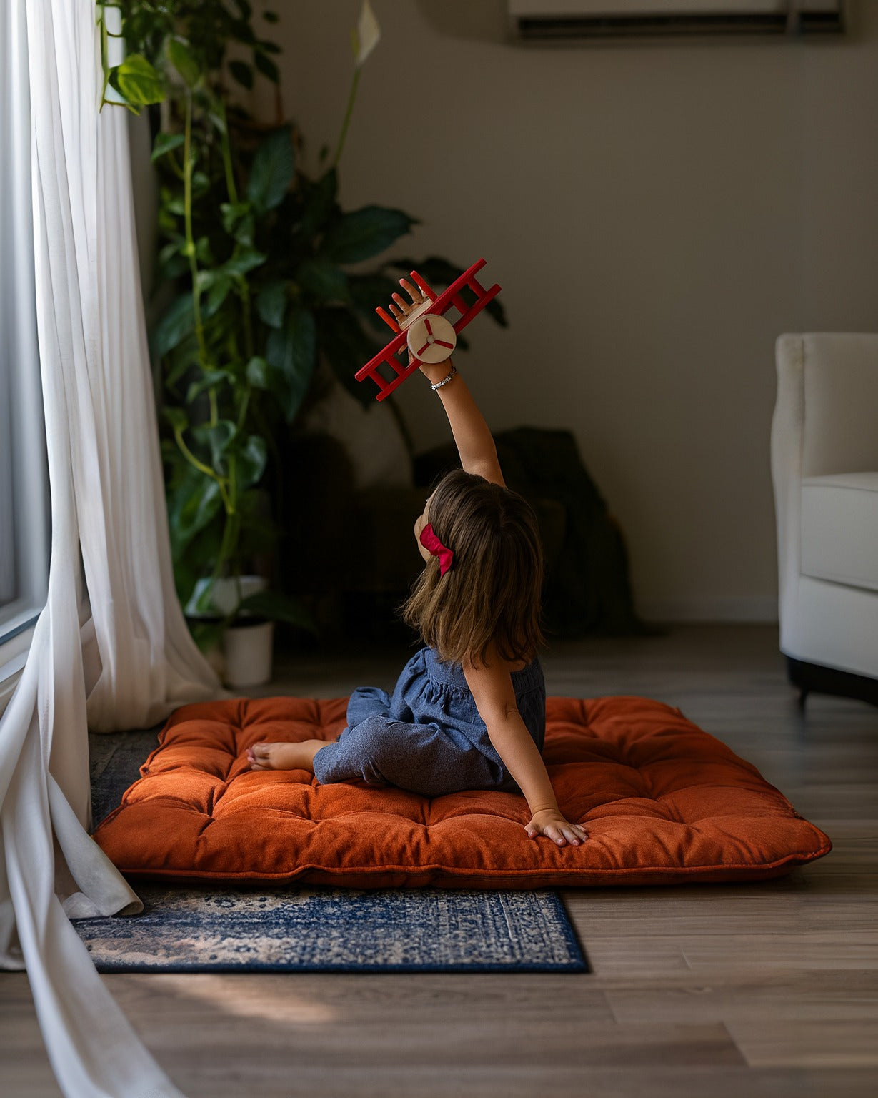 This pillow is massive, durable, and incredibly soft. The tufted construction keeps the stuffing neatly in place, even during pillow forts or storytime marathons. We love the reversible design—featuring a bright pop of color on one side and a calmer tone on the other—letting you match the energy of the room in seconds. It’s the perfect spot for kids to play and adults to relax.