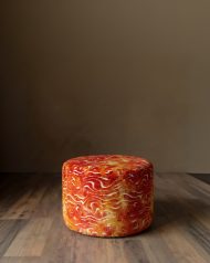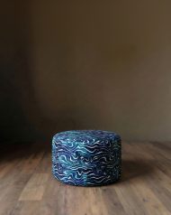 Introduce a touch of kinetic artistry to your living space with this sculptural cylindrical ottoman. Upholstered in the finest high-end Italian velvet, this piece is more than mere furniture; it is a functional masterpiece.