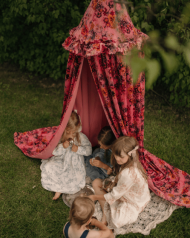 Every child needs a magical hideaway to call their own. Transform any corner of the nursery or playroom into an enchanting escape with this lush, pink floral canopy. Crafted from soft, rich velvet that feels as cozy as it looks, this hanging tent features a vibrant riot of vintage-inspired blooms in shades of deep orange, purple, and gold.
