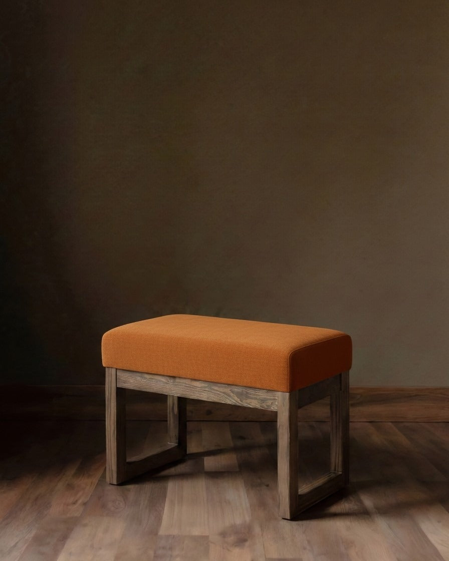 Ground your space with the perfect blend of rugged strength and vibrant comfort. This substantial bench is handcrafted from solid timber, stained in a deep, dark walnut finish that highlights the wood’s natural grain and sturdy character. Built to last for generations, the robust frame is topped with a thick, plush seat cushion. The upholstery is a high-end, richly textured woven fabric with a velvet-soft hand, featuring a warm rust velvet palette. It’s an inviting statement piece designed to bring warmth and artisanal quality to your entryway, dining table, or the foot of your bed.