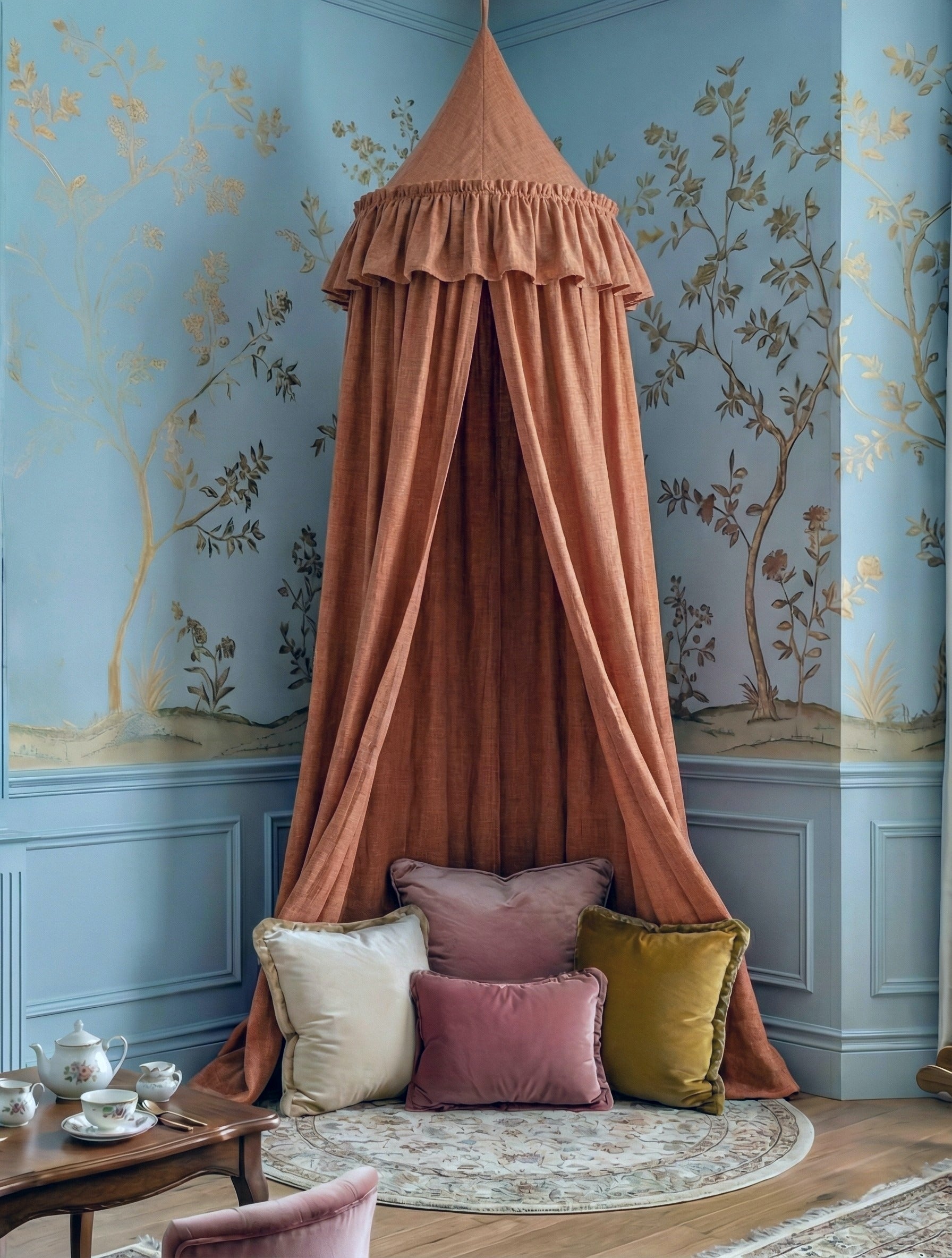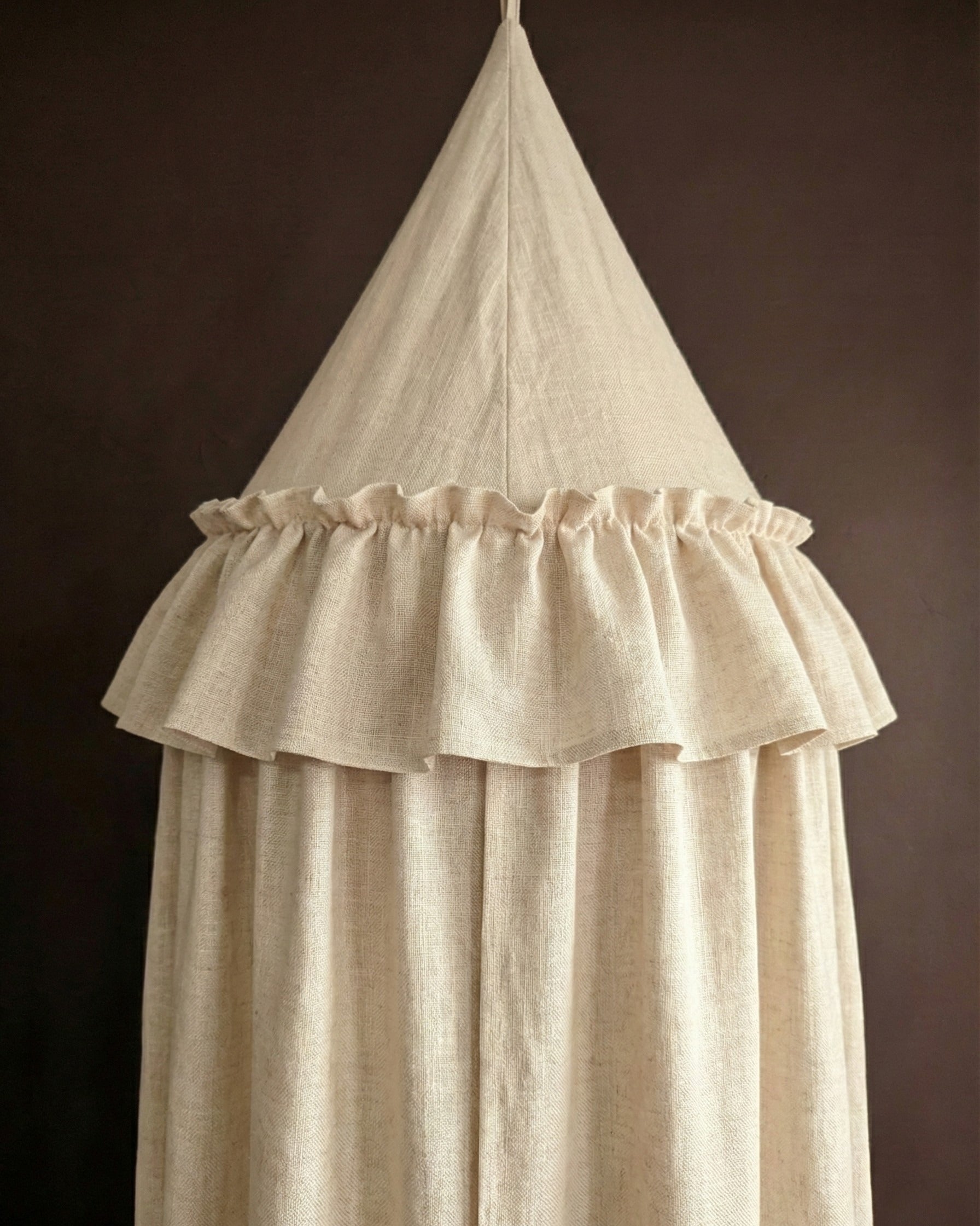 Transform your little one’s space into a whimsical retreat with our exquisite hanging canopy. Crafted from luxury fine Belgian linen, this piece isn’t just decor; it’s an invitation to dream. The fabric, known worldwide for its unparalleled softness and breathability, drapes in gentle, cascading folds, filtering light to create a serene cocoon.