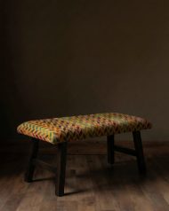 Add a touch of eclectic elegance to your home with this stunning solid wood bench. Crafted with a sturdy, dark-finished wooden frame and legs, this bench offers durable seating and timeless appeal. The rectangular seat is luxuriously upholstered in a rich velvet fabric, featuring a vibrant, multi-colored chevron pattern in shades of marigold, red, green, and purple. This eye-catching design makes it a perfect accent piece for an entryway, dining room, bedroom, or living area. Its comfortable padding & unique style blend comfort with artistic flair, making it a versatile and stylish addition to any decor.
